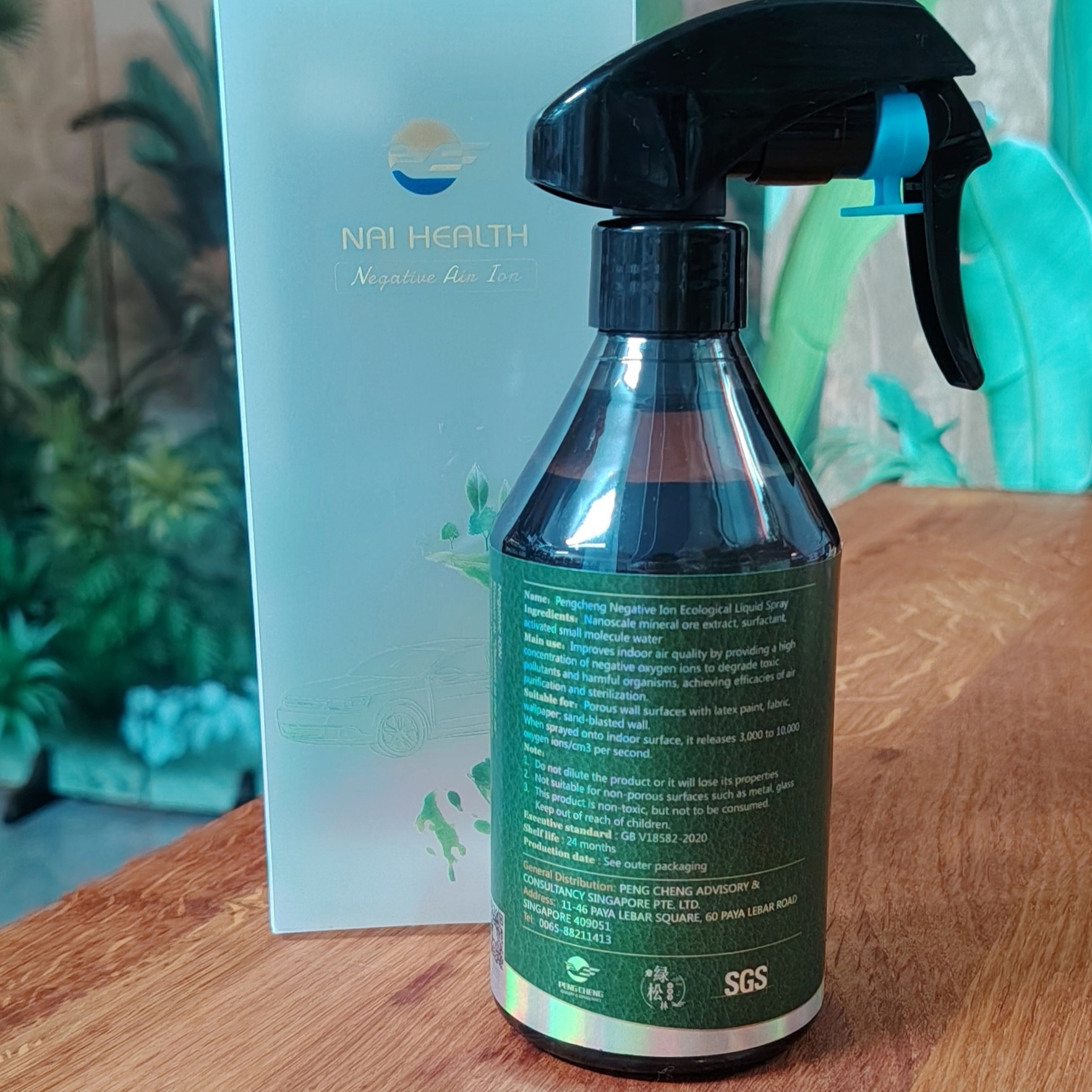Effect can be seen 5 minutes after spraying, producing 3000-5000 negative oxygen ions/cm³